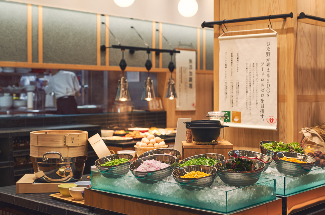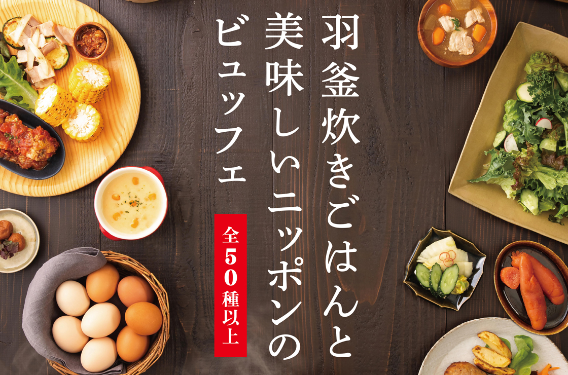 - 羽釜炊きご飯と日本のおいしいものをコンセプトにしたビュッフェレストラン